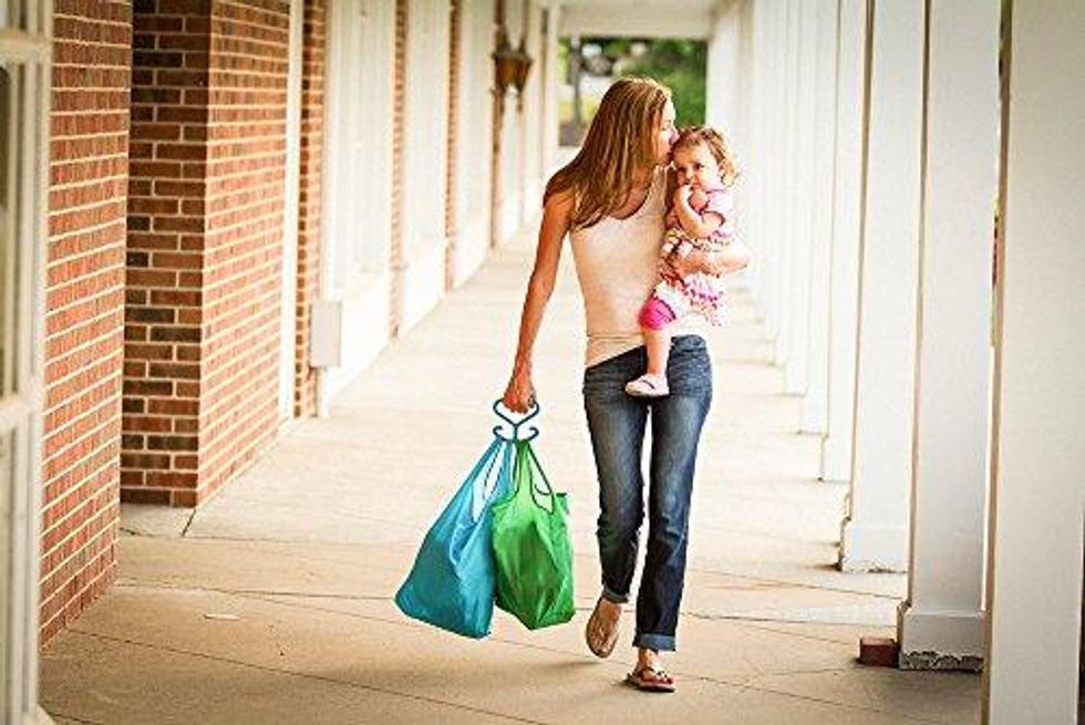 If you're like me willing to lose circulation—or worse, dropping a jar of pasta sauce—just to avoid having to make multiple trips to the car to carry in my bags. So the Mighty Handle is perfect for me. The comfortable one-trip grip can hold up to 50 pounds and can even be used to prevent bags from spilling in the car, shoppers claim.