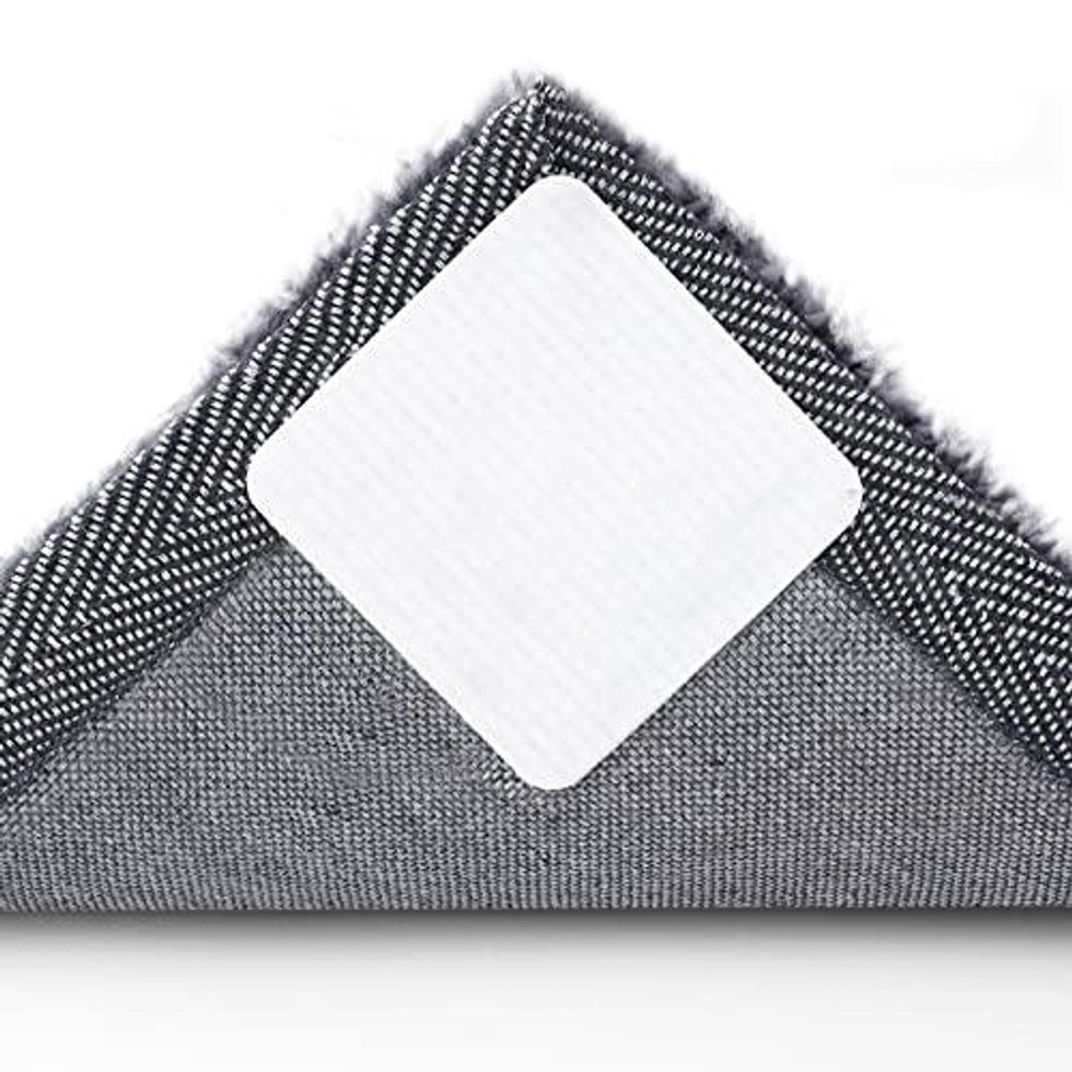 If you want your rug to stop slipping and sliding all over the place, you should try these rug grippers that create a vacuum-tight suction to the floor. The adhesive backing attaches to the corners of your rug to keep it secure, but since there's no adhesive on the other side of the grippers, they won't leave residue on your floor. They're also washable — just peel them off and give them a quick rinse.