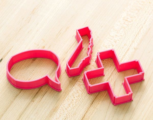 Enter Cookie Caster. This site is dedicated solely to helping you easily make cookie cutter designs to be printed on your 3D printer of choice. We easily made three different designs: the state of California, a speech bubble, and the plus sign from our logo.