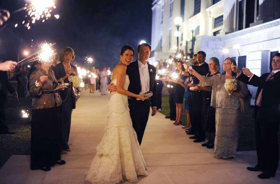 3. Sparklers: Who says you actually need to throw something to celebrate the newlyweds? This couple wanted their guests to hold sparklers to light the way to their new life together. (via Getty)