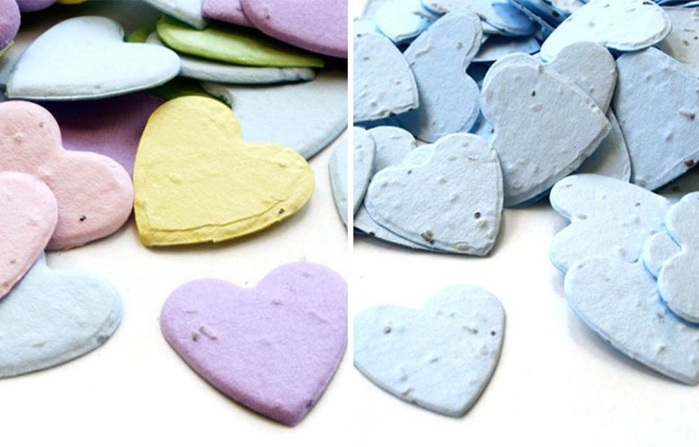 8.Heart-Shaped Plantable Confetti($10 for 350 pieces):Heart-shaped anything is completely appropriate for an event celebrating love. This adorable confetti is handmade with wildflower seeds inside to mark where your love actually bloomed!