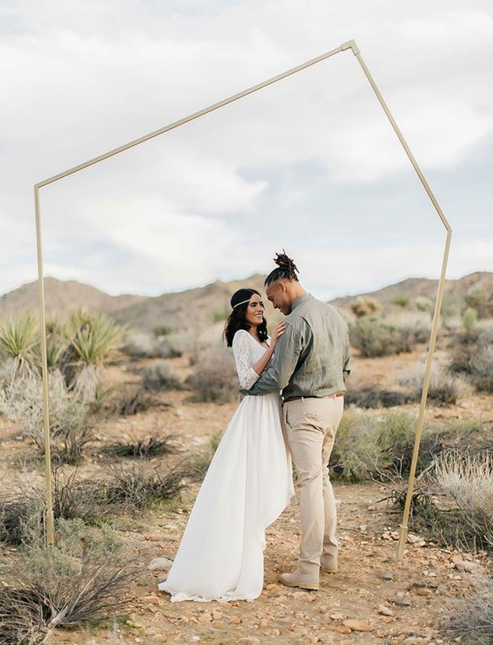 1. Boho Geo: A striking, angular arch will keep all eyes on the couple while totally embracing the simple, boho backdrop of nature. (via Holiday Celebrate / Green Wedding Shoes)