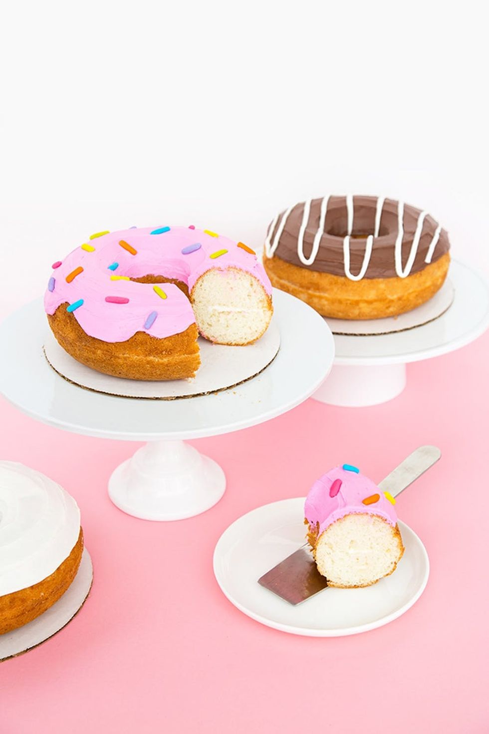 1. Giant Donut Cakes: Love the look but don’t want to actually order however many dozens you’ll need to feed your guests? Donut cakes are the answer! ( via Aww Sam)
