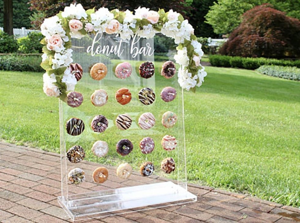 2. Save The Date Designs Co. Acrylic Donut Wall ($249): The nice thing about this display is that the artistry behind each glaze and finish truly gets to shine. Plus, ya know, less table space.