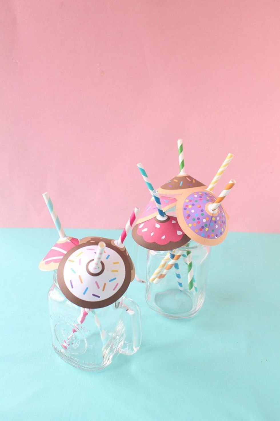4. DIY Donut Straw Umbrellas: What are donuts without milk? Nothing. Don’t forget to add straw toppers to your bar to really complete the theme. (via A Joyful Riot)
