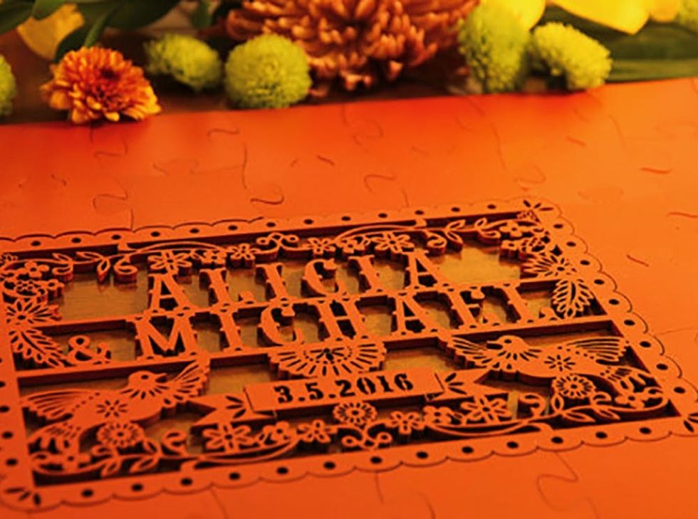 9. Cat and Bear Creations Papel Picado Puzzle ($40): Fiesta themes are so hot right now, why not bring the beauty of otomi to your special day through this completely unique puzzle. Invite your guests to pick a tile and write a note.