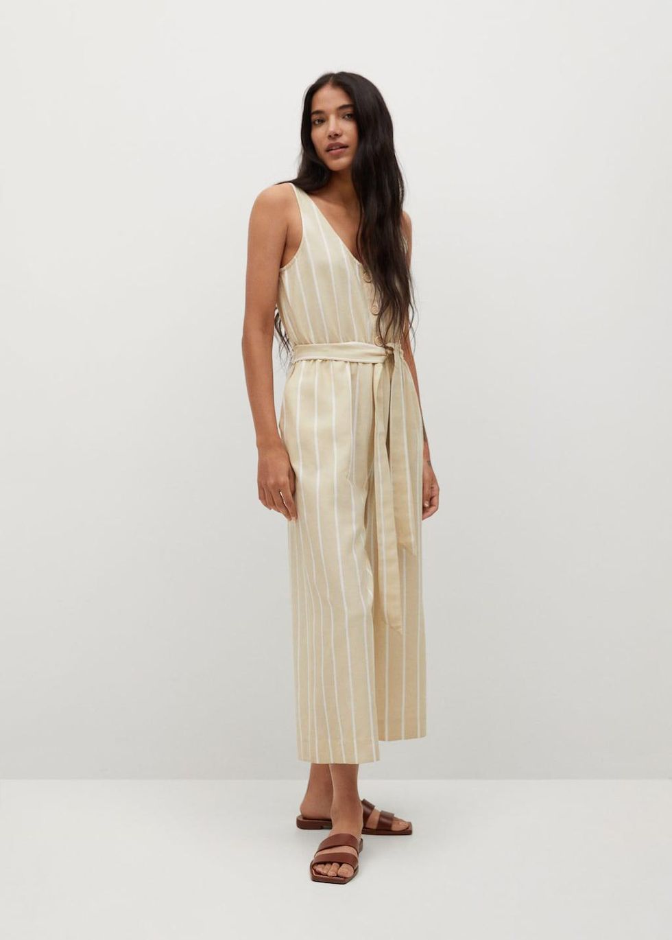 MANGO Striped Jumpsuit with Belt ($80)