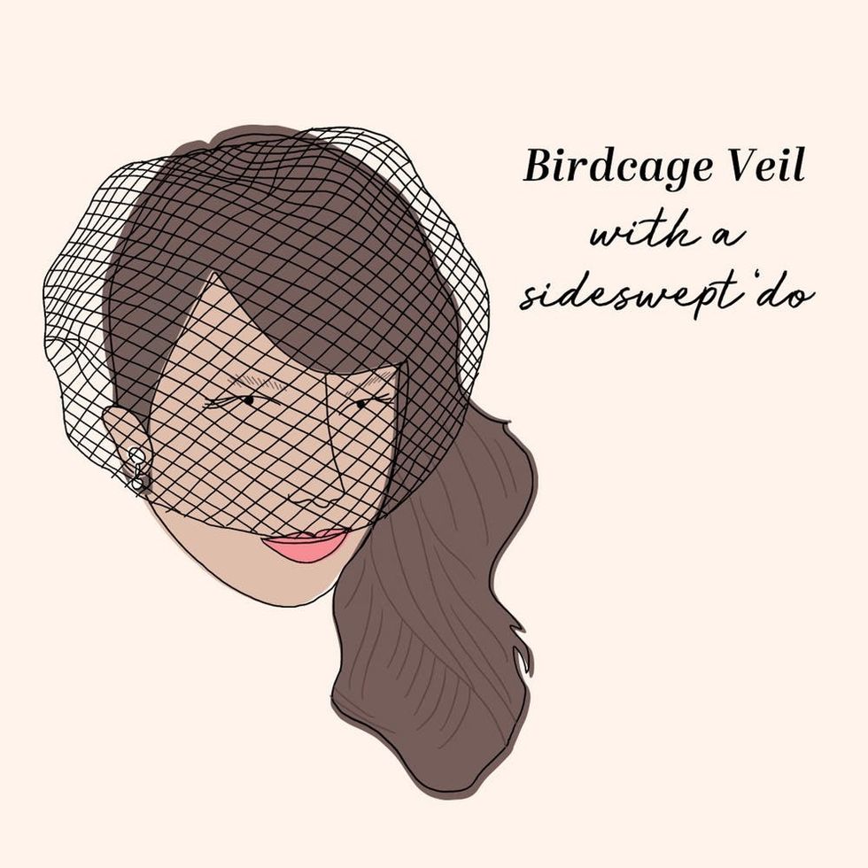 A vintage-inspired birdcage veil looks stunning with an updo that’s swept to one side.The off-center placement of your hair will draw the eye to the face, which is where your veil will hit. This sideswept style also provides a solid base for the veil to be placed into — giving you the freedom to dance the night away.