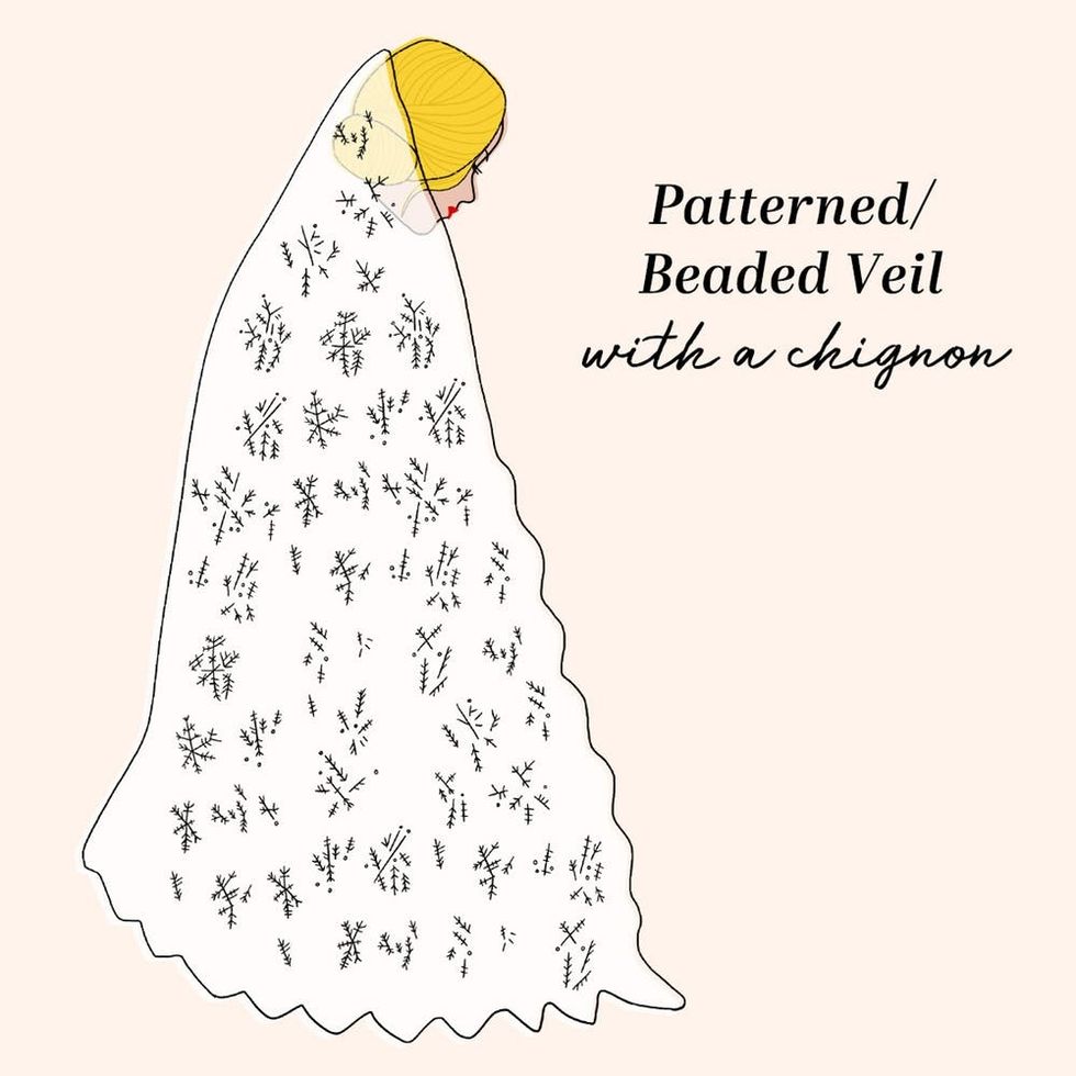 Don’t let the beauty of a patterned or beaded veil compete with your hair on your wedding day. Whether your accessory features delicate beads or a woven design, a sleek chignon will keep the focus on the showstopping veil. Elevate the style by adding a bit of volume to the crown of your head or create a more minimalist vibe with a tight and glossy knot — your call.