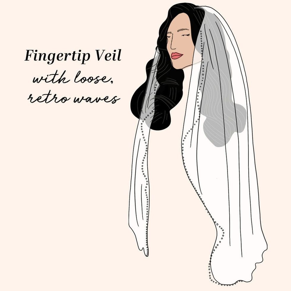 A fingertip-grazing veil gives off an ethereal feel that looks amazing with glamorous, Old Hollywood-era waves. Rocking loose curls is key here; you don’t want overly styled ringlets to overpower the soft look of your veil.