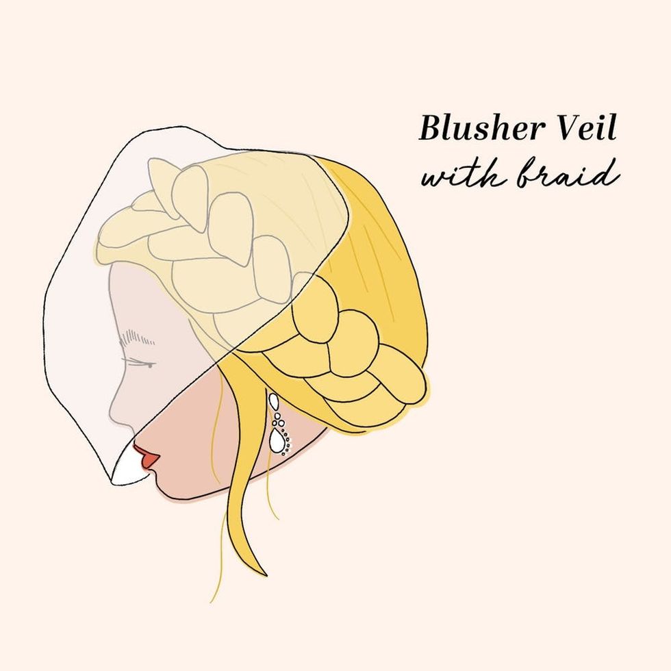 The slightly mysterious, alluring feel of a blusher is beautifully accented by a statement braid. There are a million different styles you can plait, but it’s more about placement when pairing it with a face-grazing veil. A thick crown braid gorgeously brings the focus to the face, which is where the action is happening with your veil.