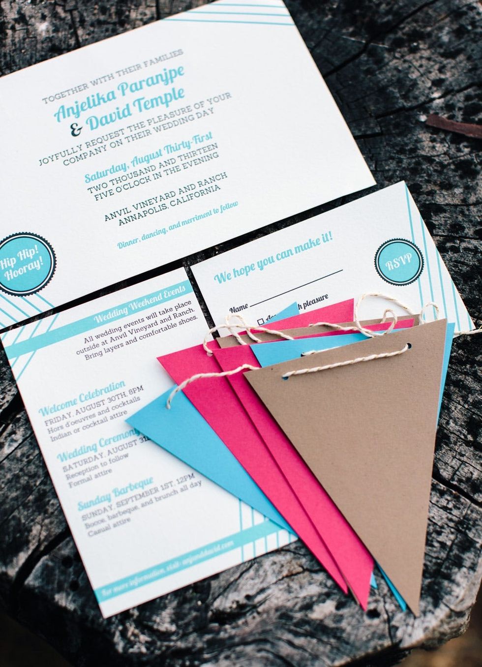 3. Invitations with Surprise Garlands: Next up, the invitations. I designed these myself and had them letterpressed locally in San Francisco. But the kicker was including a mini pennant garland right in the invitation. The idea was to make recipients feel like the party was getting started the moment they got the invite. Right after we sent invites out, it was so awesome to see these garlands popping up in the background of our friends’ photos on Instagram and the like.