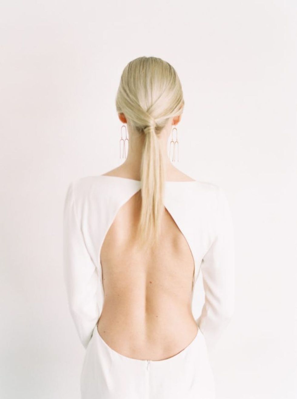 2. Sleek & Straight: If you’re more of a mod gal, a sleek and straight ponytail like this number will be ideal for your classy nuptial style. (via Orange Photographie / Style Me Pretty)