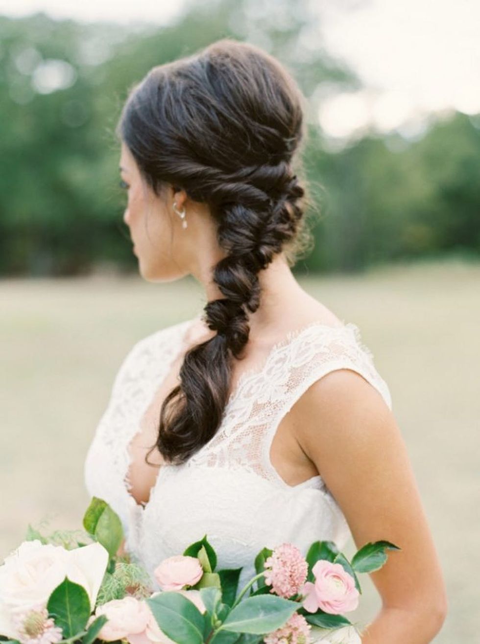 3. Loose Braided Side Pony: This look is a dream for boho brides who want to keep things flowy but still tucked out of the way. (via Apryl Ann Photography / Style Me Pretty)