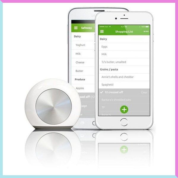 16. Hiku Voice-Activated Shopping Button ($59): This little round button will be like your own personal assistant in the kitchen. It can scan barcodes and recognizes your voice to create a shared shopping list on your phone. Start the marriage off right with a shopping list so advanced, you’ll *always* know what you need.