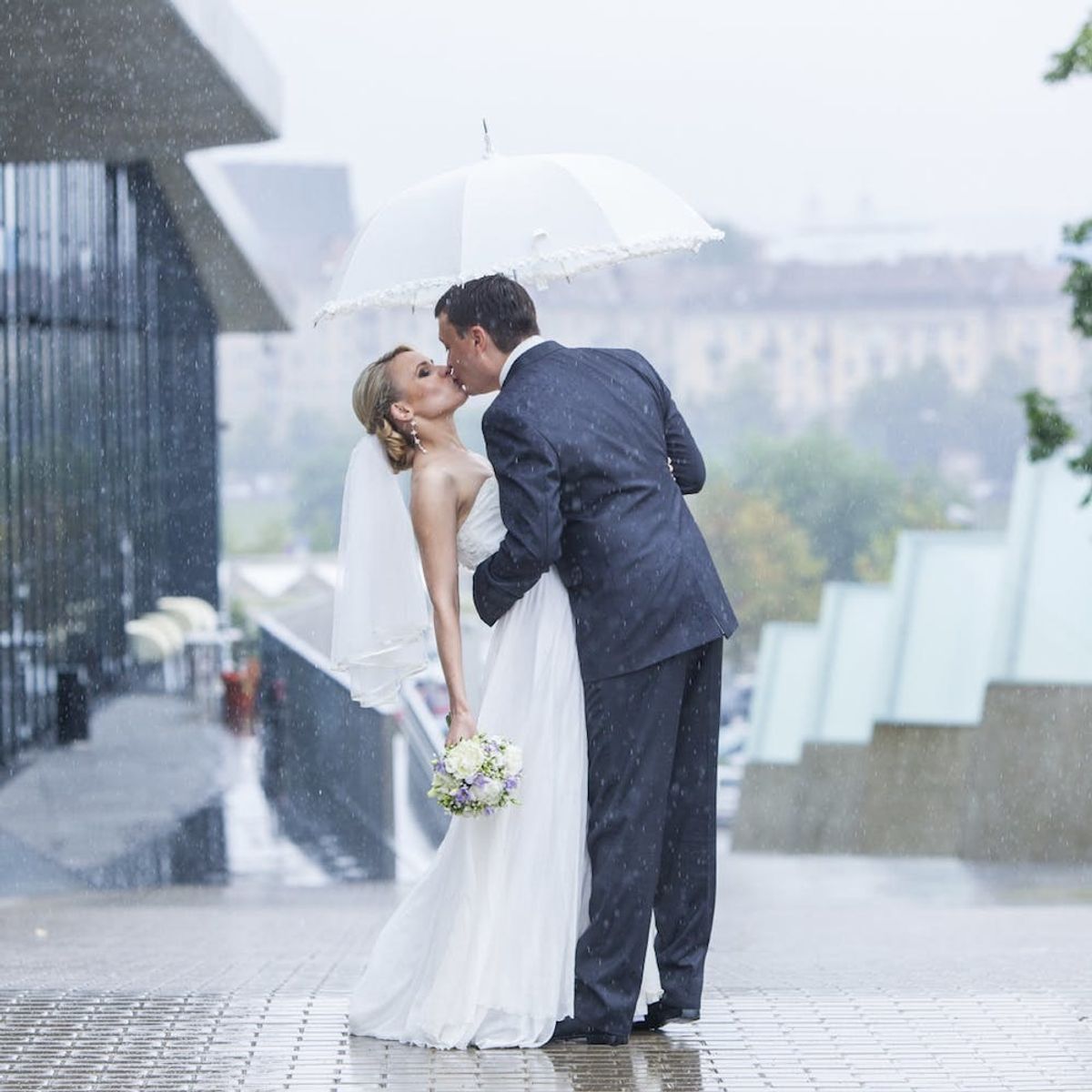 8. Rain on the Wedding Day Is Good Luck: Rain signifies cleansing and new life, which is why it’s considered lucky to have rain on your wedding day. Ancient marriages were all about carrying on the family line, so anything that would give the couple luck in starting a family was highly prioritized. This might also explain why the traditional “wedding season” takes place in the spring and summer — times of the year in which the world was in full bloom (and hopefully, the bride would soon be too). (Photo via Getty)