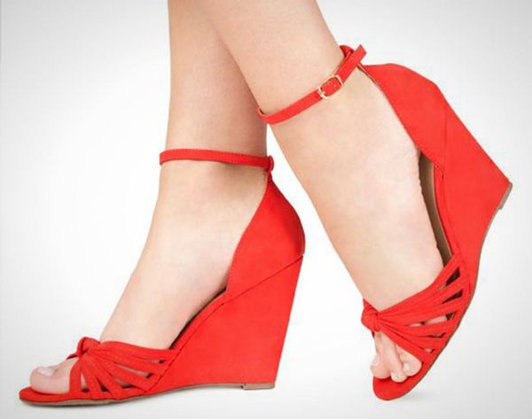14. JustFab Eden Wedges ($40): These certainly aren’t subtle, but the poppy red screams summer wedding attire.