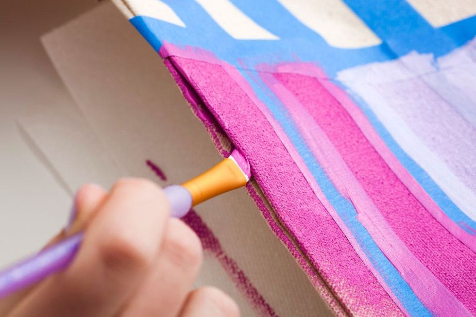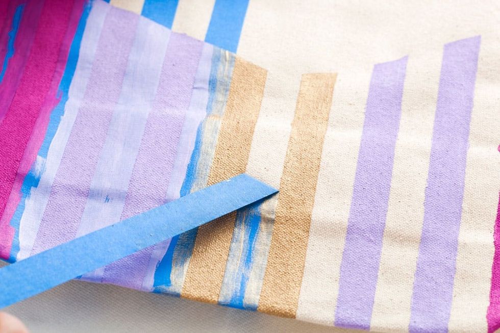 Now time to paint! We did a few pink stripes, then a few lavender ones, and gold.