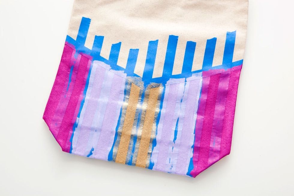Last year around this time, we busted out our fabric paint and an extra large market tote and got to work on making a chic weekend bag Well, we’re back with our tote, but this time, we’re ditching the studs and going with a lavender hue instead of navy for a tote that is decidedly springy. Call it an ode to Radiant Orchid, the color of the year. And we think the folks at Pantone would totally approve ;)