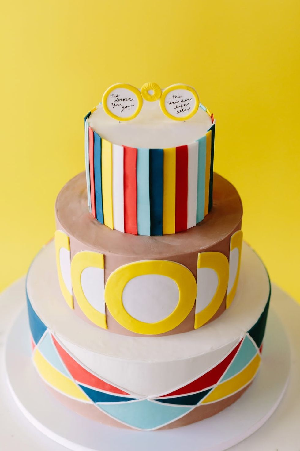“I was dying to play with a Wes Anderson theme,” Lead Planner and Creative Director Amy Shackelford tells Brit + Co. “I’m such a big fan of his work and haven’t had a great venue opportunity to explore it.” The shoot took place at Brooklyn space Berg’n, which set the scene for the quirky photos. “Berg’n seemed like the perfect place with the opportunity for a color seamless backdrop and Patina furniture rentals at our disposal,” she says.