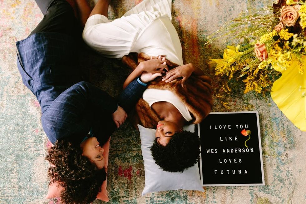 There are people who like Wes Anderson, and then there are people who LOVE Wes Anderson (we’re looking at you, whimsical Airbnb guests). The latter group is sure to fall head-over-heels, Futura-over-yellow-background in love with this incredible wedding shoot by New York-based “alternative event planning company” Modern Rebel. A collaboration between three Brooklyn-based creative ladies and a real-life couple, the images are the stuff that film dreams are made of. And true to its inspiration, no detail is overlooked. From the picture-perfect invites to the signature yellow floral arrangements and the symmetrical shots by Karen Obrist, this is a project that indie-darling brides will be talking about for ages.