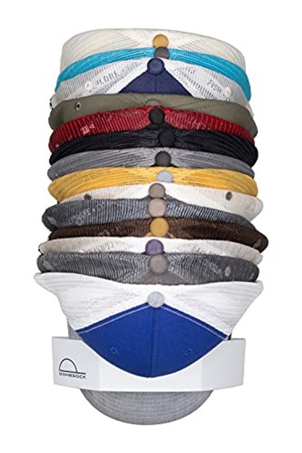 If they have a lot of ball caps, odds are they don't have a great way to store them. The Dome Dock is here to help. It's a wall-mounted holder that can stack up to 20 caps in unused space. With this, they'll be able to see all their hats easily, and to get one out, all they have to do is lift the hats on top.