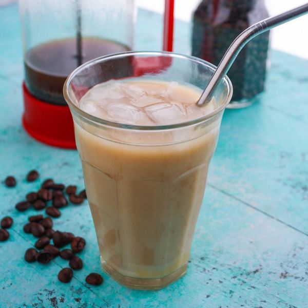 While Vietnamese iced coffee is traditionally brewed using a special stainless steel filter, there’s an easier, more Americanized way to do things. If you don’t have the special filter, simply brew a dark roast coffee using an espresso maker or French press. Next, add a few tablespoons of sweetened condensed milk to a heat-proof glass, add the brewed coffee to about 3/4 of the way full, stir, and add ice. Voilà!