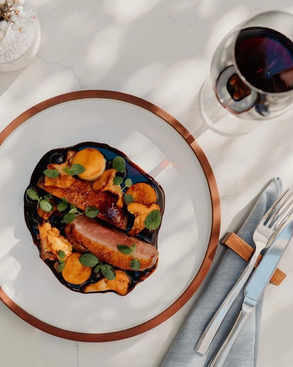 We kicked off our stay by hopping on the hotel’s complimentary cruiser bikes to explore Yountville. We pedaled down charming Washington Street, then veered onto the town’s serene bike path, eventually winding our way through quiet country roads lined with peaceful vineyards. It was the perfect way to ease into the slower pace of Yountville — and a dreamy start to our stay. After, we hung out by the heated pool and hot tub before heading to our dinner reservation.