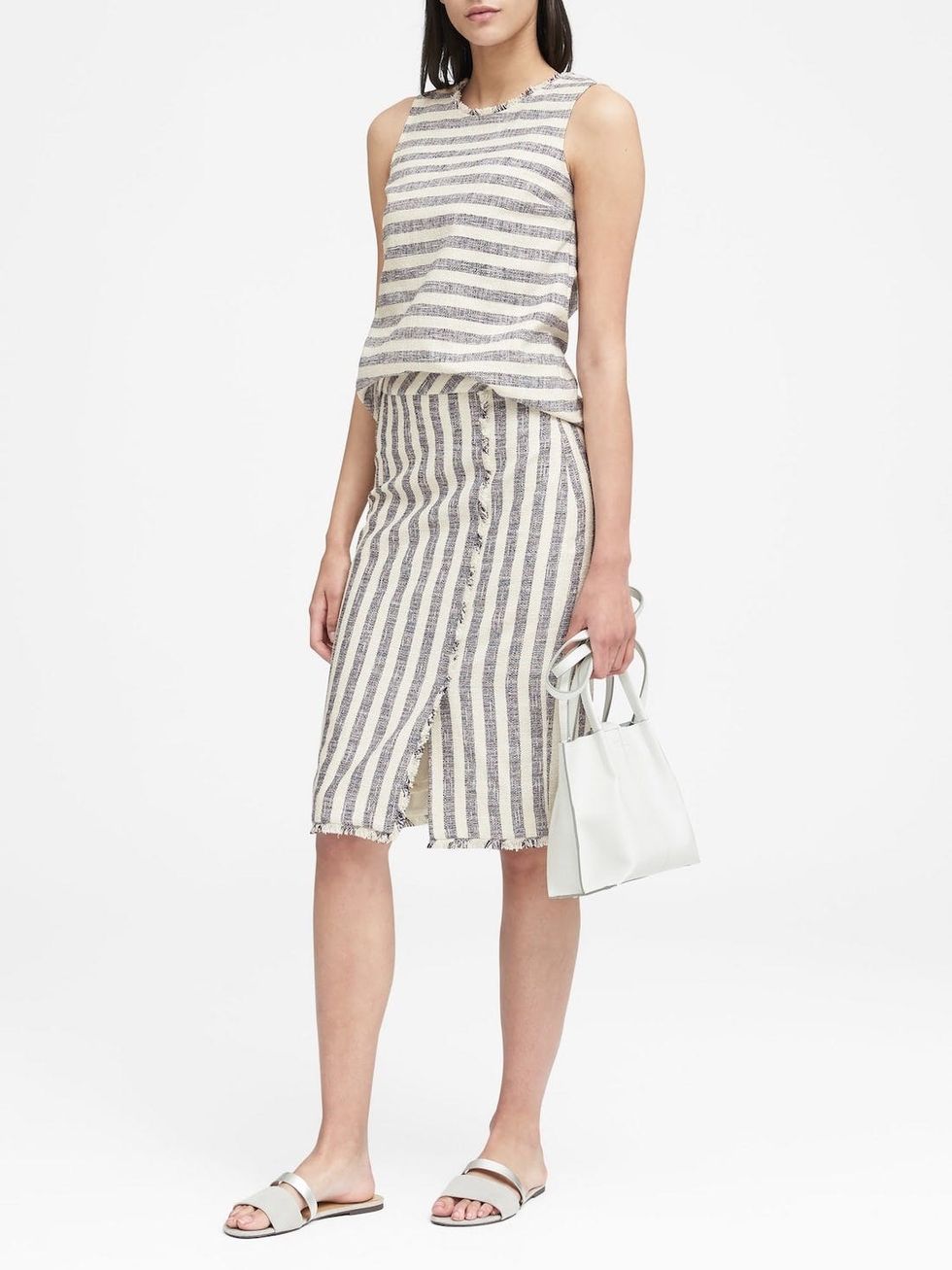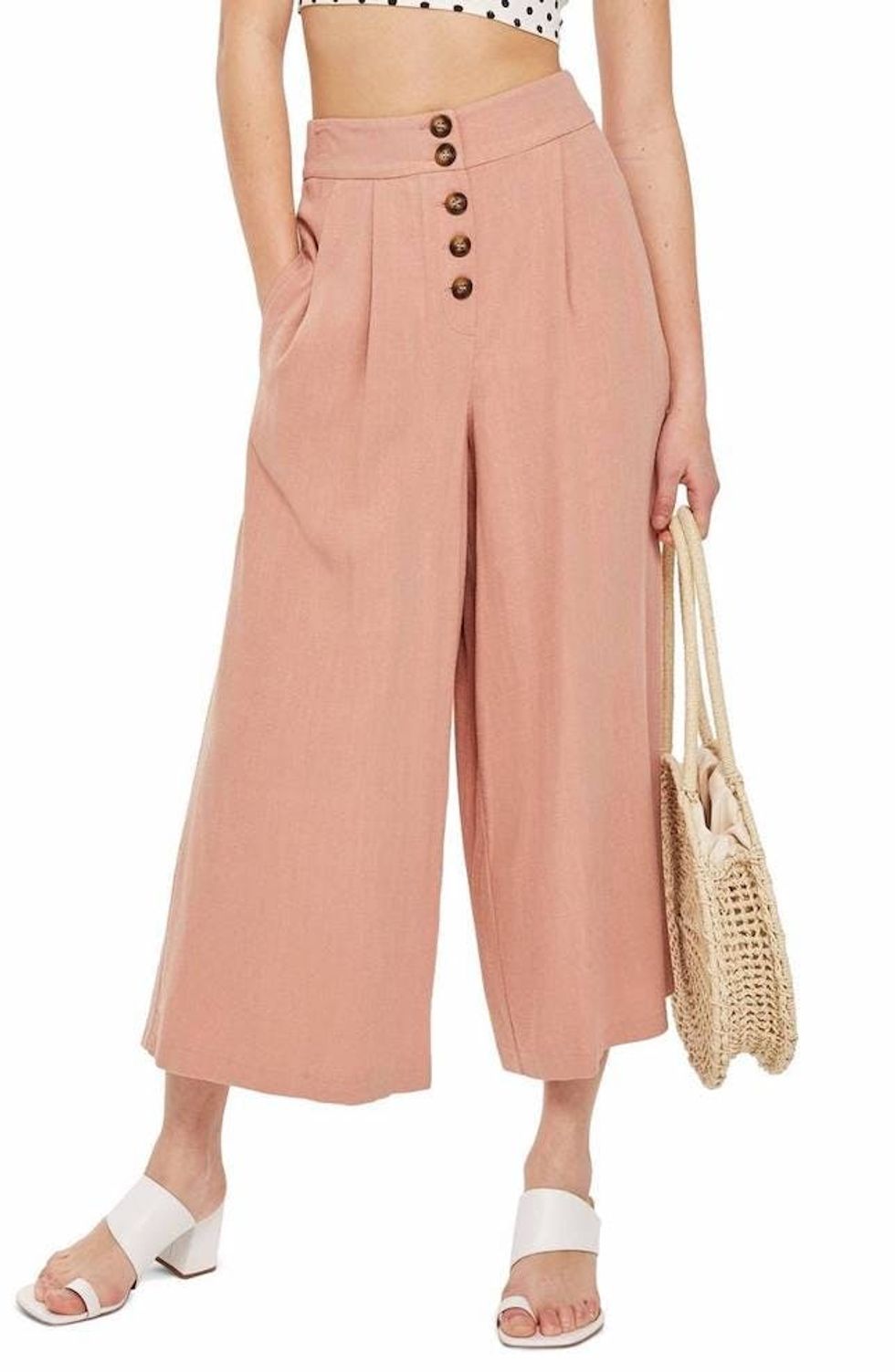 The key is sticking with breathable fabrics and silhouettes that don't cling to your bod too much. Think cotton and linen blends, breezy skirts and dresses, and wider leg pants. In the interest of getting your