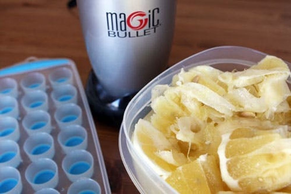 Get your tools together. For blending we used a Magic Bullet and for freezing we went with a sphere shaped ice cube tray. These aren't the fancy totally round spheres but they do the job. ;)