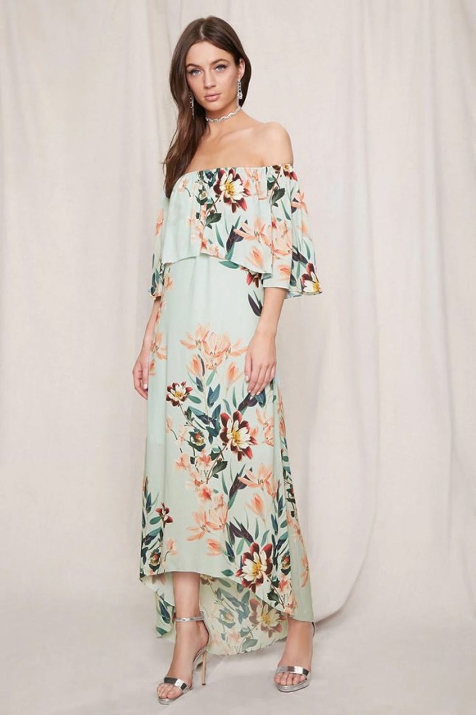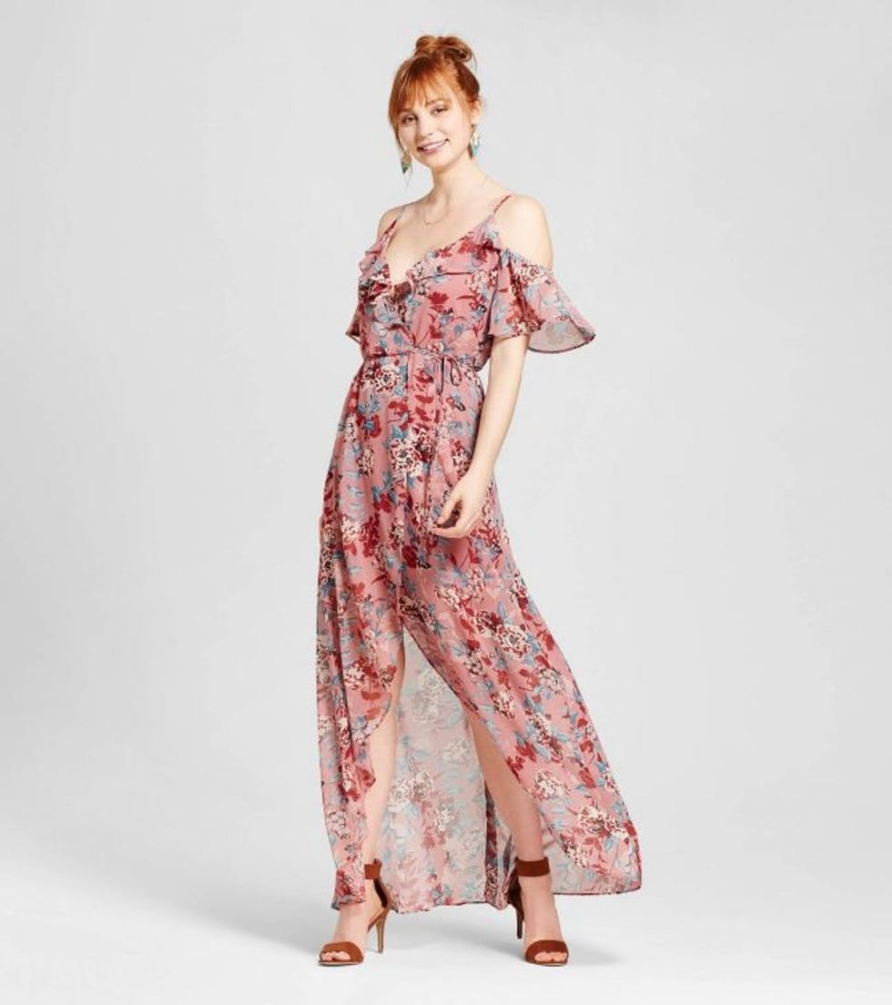 8. Target: You heard right, girl. Be it a beachfront fête or a rustic backyard soiree, Target offers plenty of ethereal options that will do your bridesmaids proud. Brit + Co Pick: Target Floral Ruffle Cold Shoulder Maxi Dress ($33)