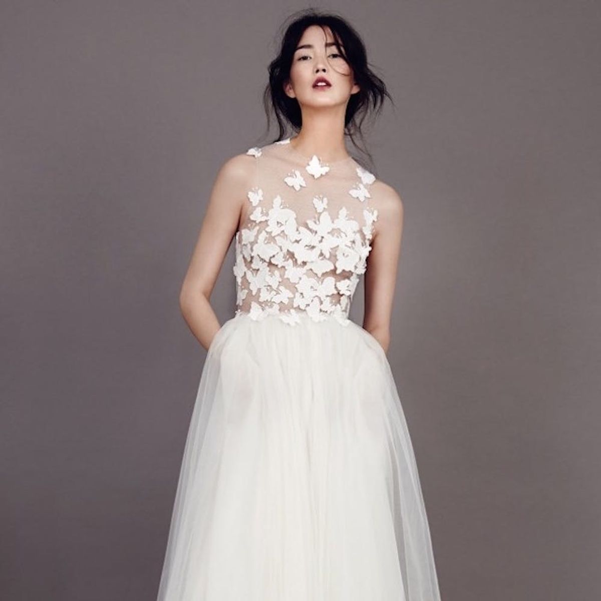 48. Kavier Gauche Papillion D’Amour Dress ($3,076): Consider your search for “the one” over. Fragile butterfly appliqués, flowy ivory tulle and — wait for it — POCKETS are too good to pass up.