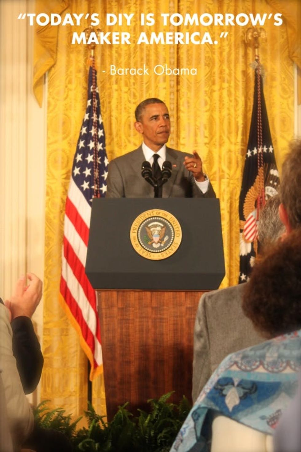 I will never forget President Obama addressing the attendees. In his speech, he got us all laughing when he asked why there was an ‘e’ at the end of ‘Maker Faire’ and then got serious about how makers can impact the future of American manufacturing: “Today’s DIY is tomorrow’s ‘Made In America” — um, best quote EVER? Can I get that laser etched onto a poster, please? [runs to go make poster]