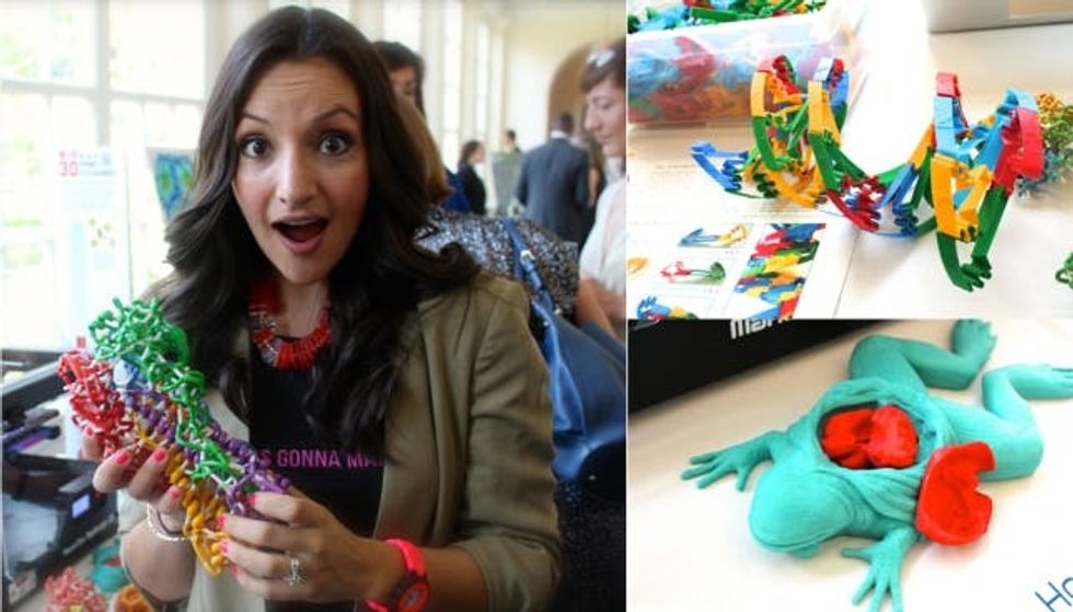 No really, I did. This is me holding a 3D-printed DNA strand of the flu virus. Crazy huh!? Structural biologist Darrel Hurt created these 3D printed models to help people understand molecular structures. Being able to see and hold 3D printed DNA was such a fun way to approach this topic. And how cool is that 3D printed frog? I can already see these in classrooms across the country!