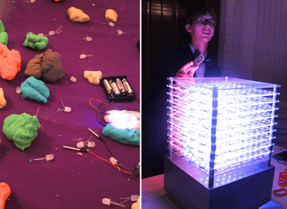 I was thrilled to see so many women and kid makers at yesterday’s event! From the mother-daughter team presenting Squishy Circuits, which uses Play-Doh to create circuits, to Beatty Robotics created by teenage sisters Camille and Genevieve Beatty, it was wonderful to see women participating in the maker movement in such large numbers! And let’s not forget about kids. From his marshmallow shooter to his LED shield (powered by the Intel Galileo), young makers like Joey Hudy were definitely bringing their A-game.