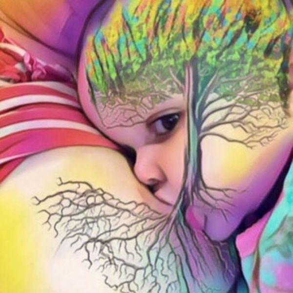 The #treeoflife movement was started by mom Cassandra who wanted to commemorate her first year of breastfeeding her daughter with a piece of art. She experimented with flower images over her breast but opted for a tree to show the roots from her breast turning into a tree over her daughter’s face. She tagged it with #treeoflife and the viral social media trend was born. Since then, she’s helped hundreds of other moms create their own #treeoflife pics, posted on her @keeponboobin Instagram account.
