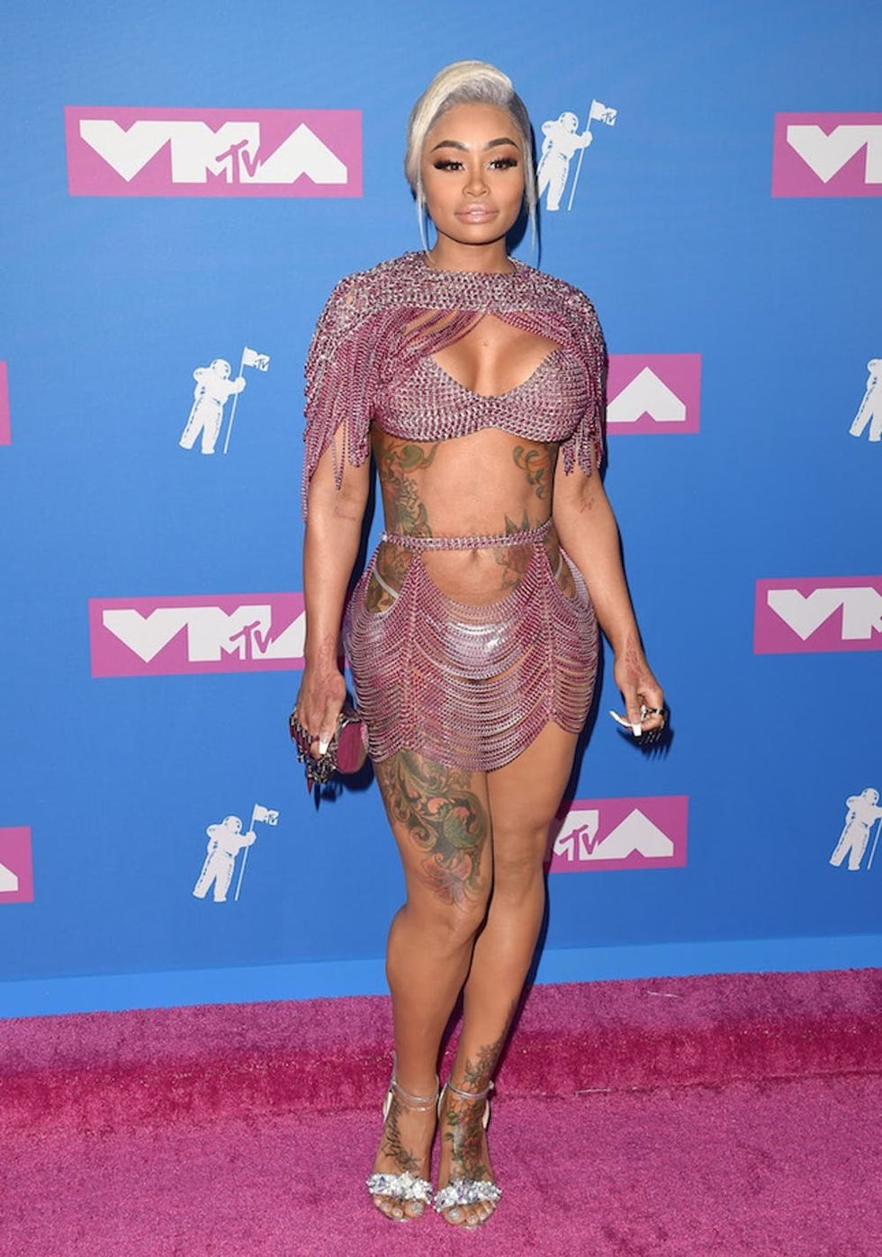 3. Blac Chyna: Rose’s longtime bestie kept her hair and makeup sleek and simple, but brought the drama with her pink chain link-inspired look. (Axelle/Bauer-Griffin/FilmMagic)