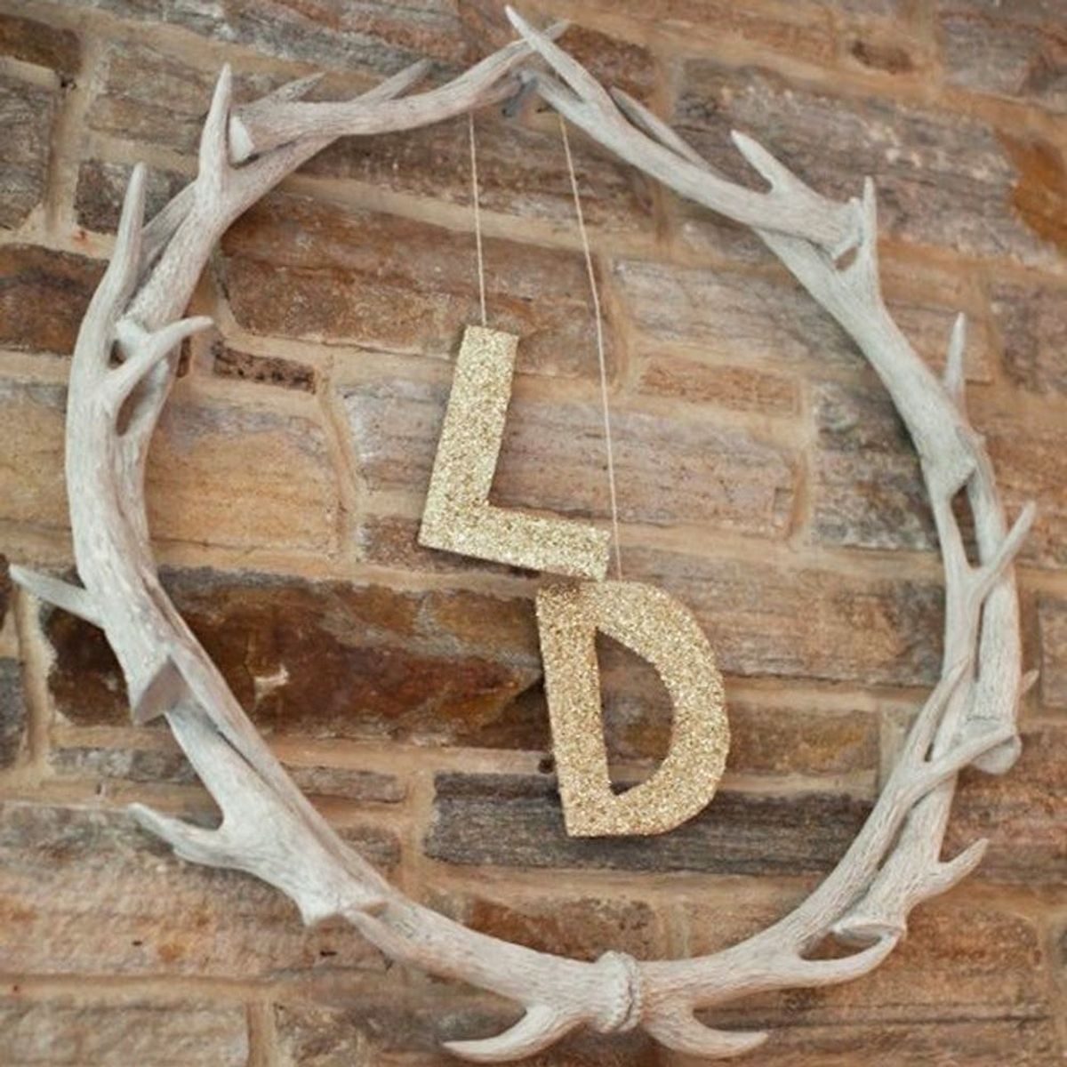 8. : A rustic antler wreath looks especially charming with the couple’s initials displayed in the center. (Photo via Jamie D Photography)