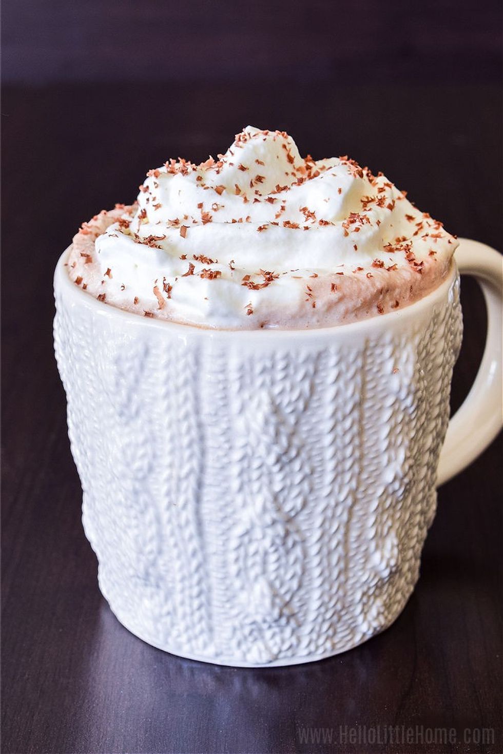 Indulge in the ultimate winter warmer with this hot chocolate: a quick, cozy, and boozy delight perfect for chilly evenings—customize it with your favorite liquor for a festive touch! (via Hello Little Home)