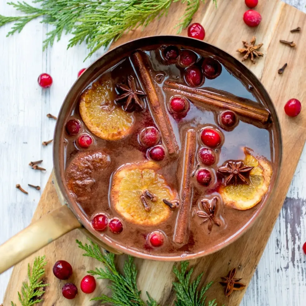 Savor the season with this mulled wine - a warm, fragrant blend of medium-bodied wine, brandy, brown sugar, and aromatic spices like cloves, cinnamon, and fresh ginger, enhanced by the sweet slices of Comice or Forelle pears. (via Amanda Wilens)