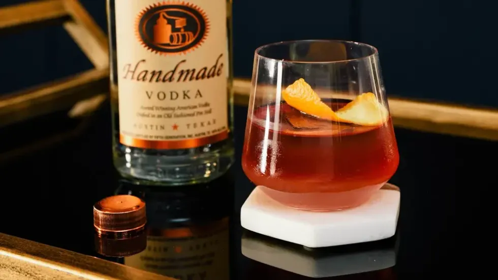 Combine Tito's Handmade Vodka, red wine, orange liqueur, orange juice, and cinnamon syrup in a shaker with ice, then strain into a glass and top with red wine—a perfect, spiced sip for winter nights. (via Tito's)