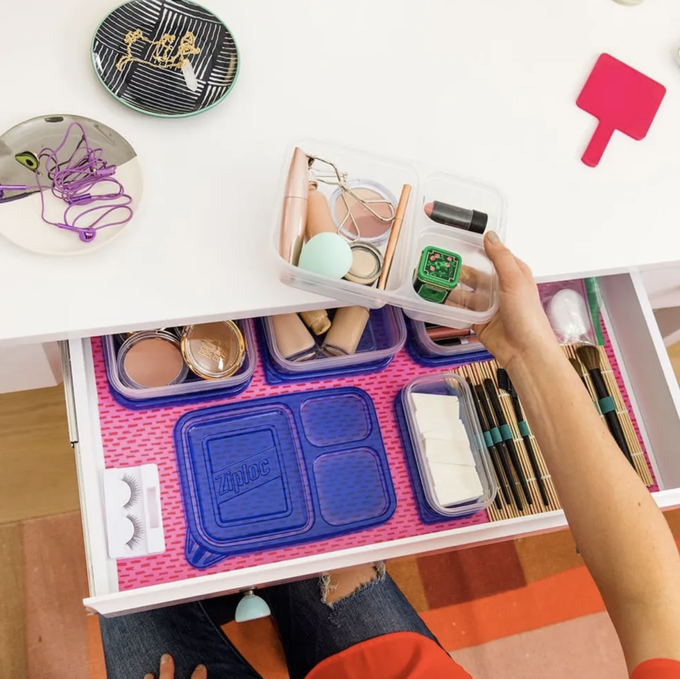 DIY Ziploc Containers Makeup Organizers: Give your cluttered makeup drawer a makeover. With the help of the practical household Ziploc Container, you'll have everything you need to get started. (via Brit + Co)
