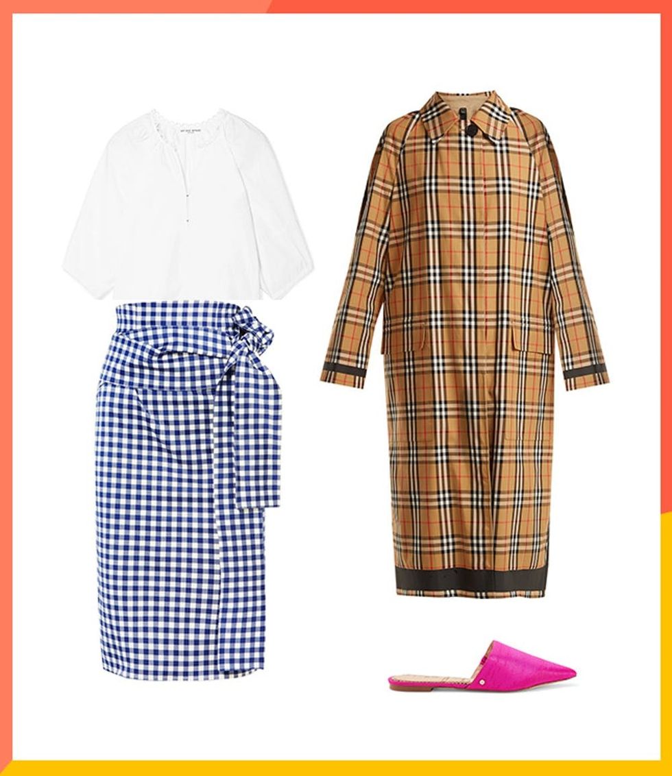 Layers are always a good idea, which is why the trench should stay. It’s dressy yet practical, so keeping this versatile winter coat in your springtime rotation is a no-brainer. Plus, plaid is totally IN right now. Rock your iconic outerwear with more patterns, a pop of magic slipper color, and a classic white blouse.