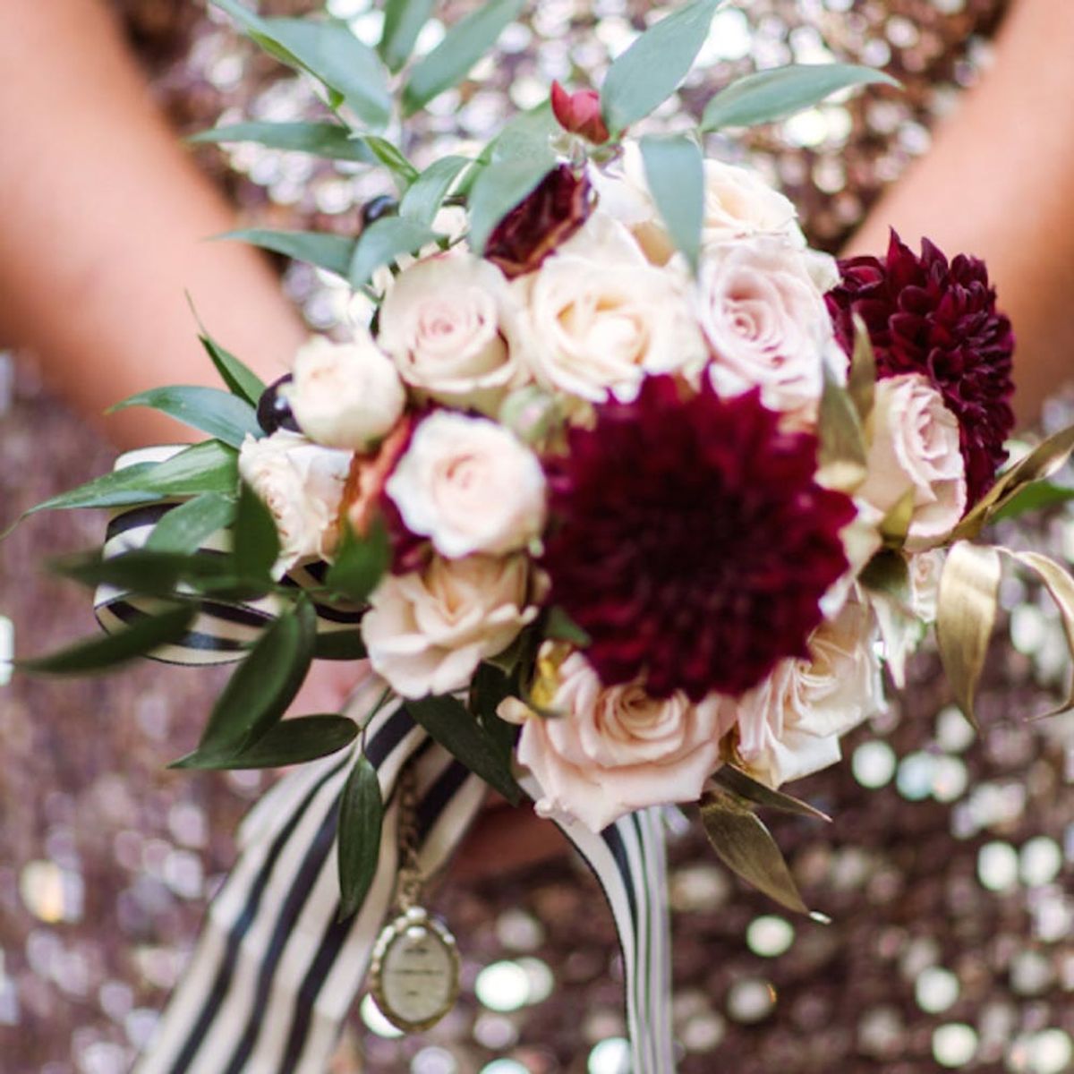 5. Navy + Pink: Soft and sweet can still be done in winter months as long as you go with the right color pairing. Pick a dark color like navy to ground your overall color scheme and then pair it with some sweetness, like hues of pink. This bride’s bouquet says it all! (Photo via The Great Romance Photo)