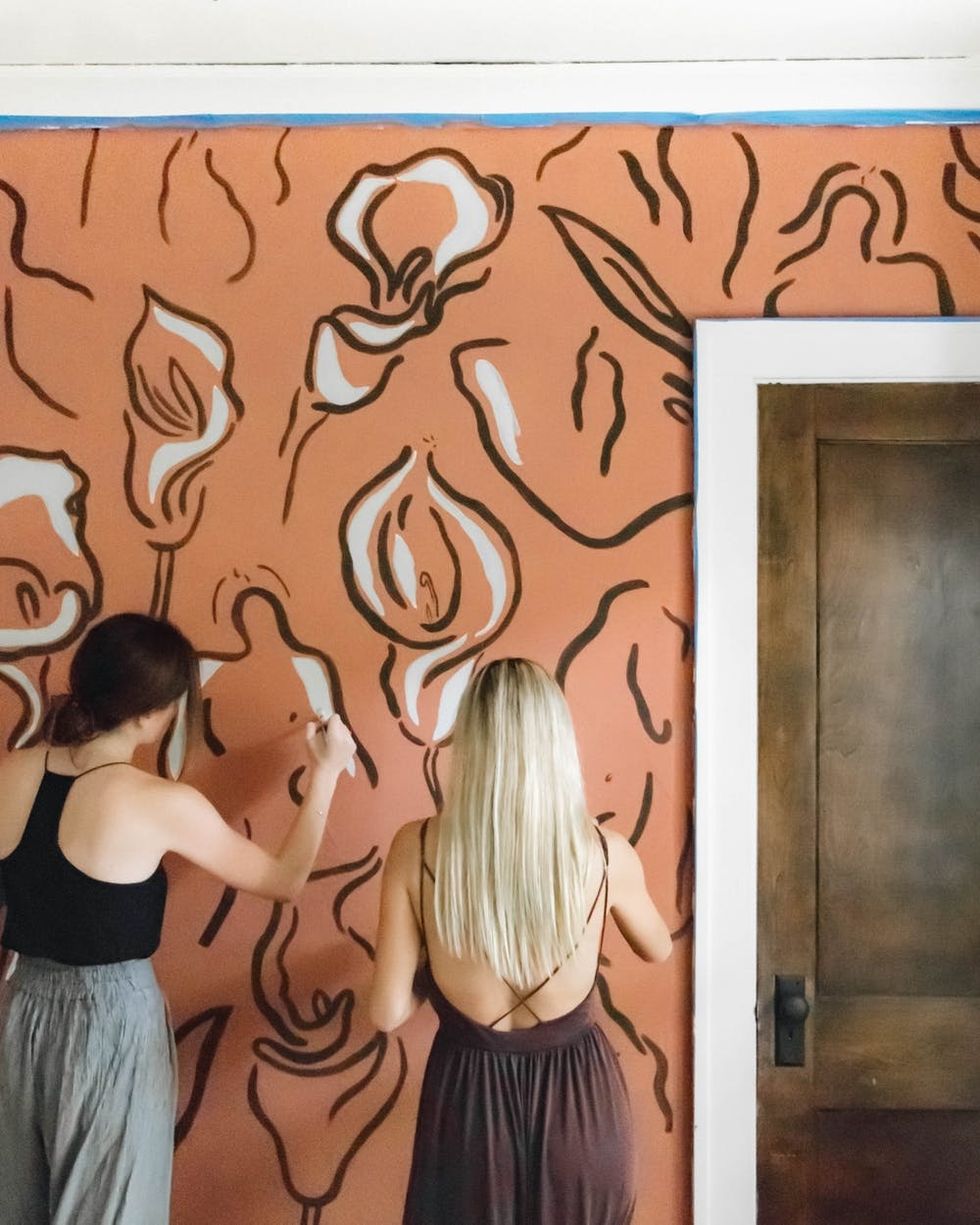 If you’ve been scrolling Pinterest lately, you’ve almost certainly encountered the trending shade of terra cotta-like orange called Cavern Clay. We’ve noticed the hue, which was named Color of the Year for 2019 by Sherwin Williams, popping up everywhere. And maybe it’s our pumpkin spice addiction or our love for watching pottery makers on YouTube, but we instantly fell hard for it. However, it wasn’t until spotting the mural in this amazing room makeover from the blog Wit + Delight that we truly realized how versatile (and feminine!) this hue can be.