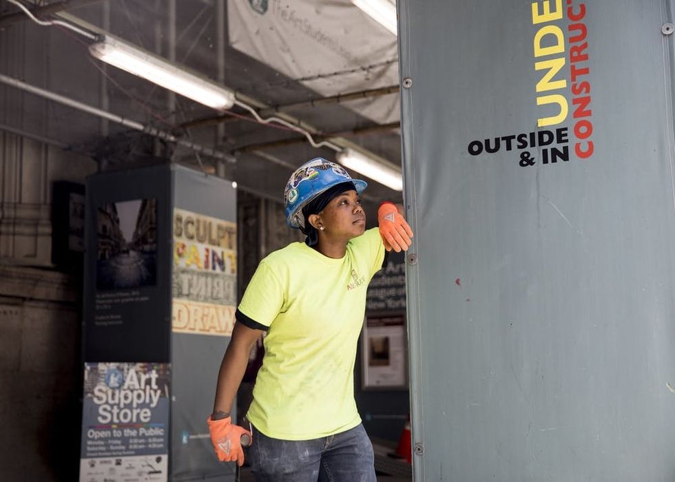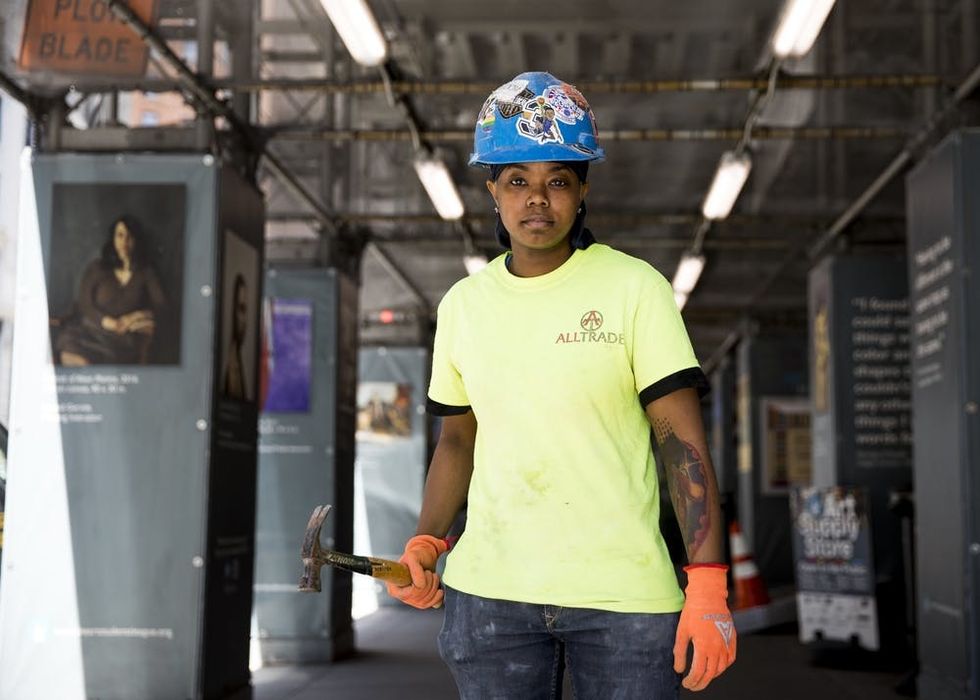 Construction worker Tranell Rock barely clears five-foot-two in steel-toe work boots. Though she’s 28, she could easily scam her way into a central casting call for high school students if she tried. As she chats with a cluster of hard-hatted coworkers — all of them male, and at least some of whom could be described as “hulking” — Rock is conspicuous in more ways than one.