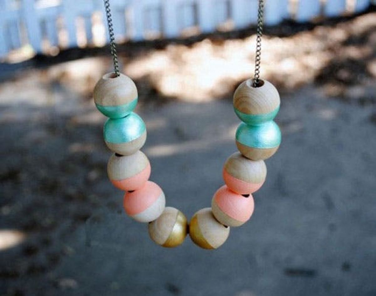 Create more texture by painting (or staining) your standard wooden craft beads. (via The Most Delightful Adventure)