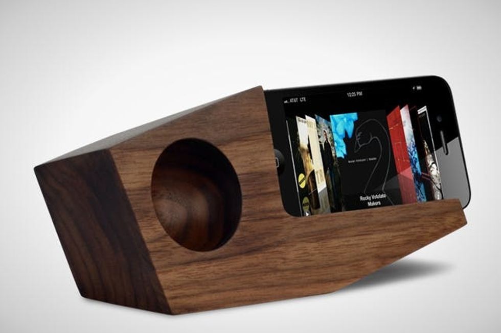9. Walnut Pivot Amplifier ($75): The art of the powerless amplifier is becoming more and more refined over the years. This beaut is a great example of how a perfectly crafted slab of wood goes a long (and loud) way.