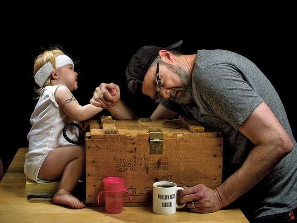 Dubbed Confessions of the World’s Best Father, this series started as an attempt to create an image that his new daughter, Alice Bee, would one day appreciate. The first image featured his eight-week-old daughter being cradled like a football, while he appears to be squirting breast milk into his-now-iconic World’s Best Father mug. Friends, family and the Internet immediately fell in love. What new parent doesn’t understand the sleep-deprived hilarity of being a first-time dad?