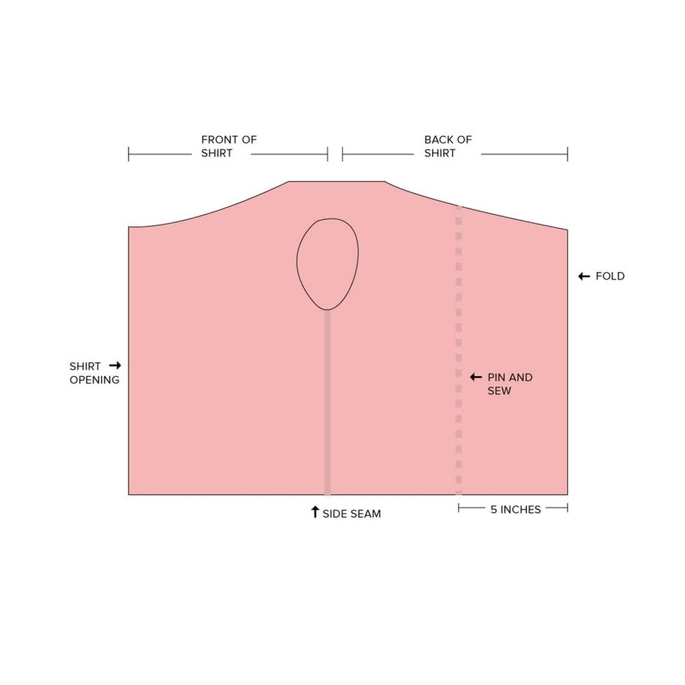 Remember how we added 10 inches to the measurement of our shoulders? Well this was to give us ample fabric to create the front wrap, but now we need to alter the back of the shirt to fit our shoulder blades. By measuring five inches from the fold and then sewing together, you did just that! Now it’s time to cut off that extra five inches and pretend like that never happened ;)